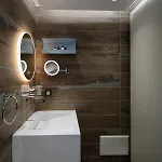 Separat toalett och dusch finns till ditt förfogande i den här strandnära lägenheten.